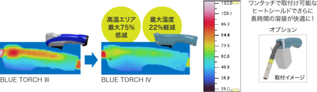 ハンドルの温度上昇を抑制し、使用率の高い環境でも快適な溶接を実現します。
