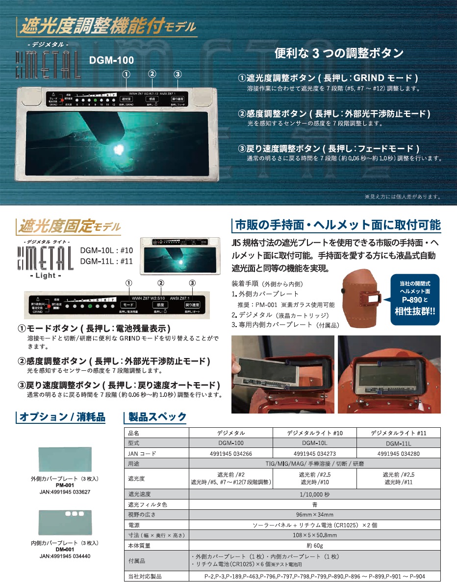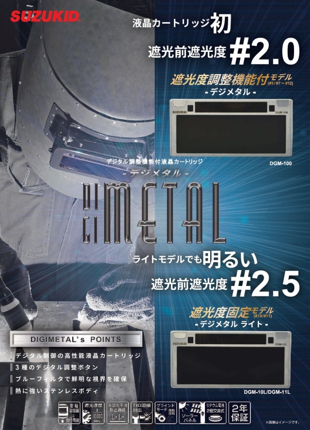 | 製品名: | スズキッド 遮光度調節機能付液晶カートリッジ デジメタル DGM-100 手持ち面・ヘルメット面用 |