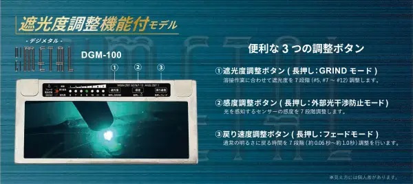 溶接作業に合わせて遮光度を7段階(#5#7〜#12)調整します。