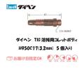 ダイヘン(DAIHEN) TIG溶接用コレットボディ H950C17(3.2mm) 5個入りです。高品質溶接を支えるダイヘン(DAIHEN)純正部品です。【適用トーチ】AWF-1541,AW-17,AWF-1581,AWF-17,AWX-17,AW-18,AWD-17,AWD-18,AWF-1541,AWF-1581,AWF-2041,AWF-2081,AWX-2081,AW-26,AWF-26,AWD-26