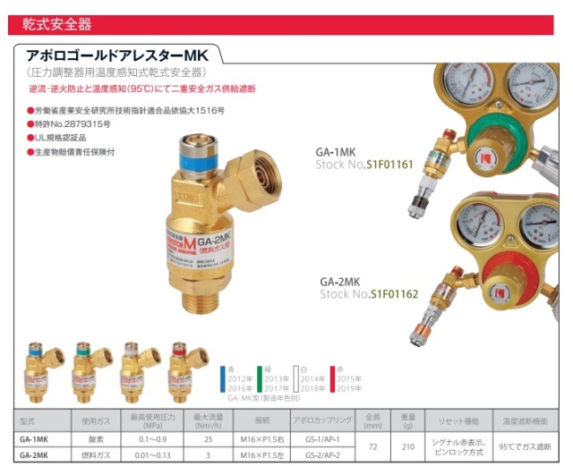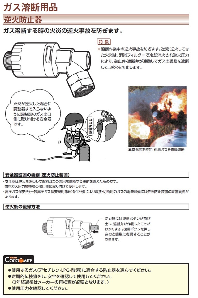 | 製品名: | 小池酸素 ガス溶断器用圧力調整器(アセチレン用) 逆火防止器付 |